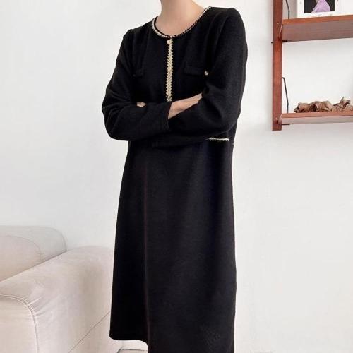 오스틱니 2025 신상 여성 봄가을 날씬해 보이는 디자인 감각 외출용 밴드 긴팔 원피스
