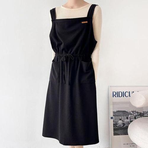 [다잇템_패션]여자 슬리브리스 검정 드로우코드 롱원피스