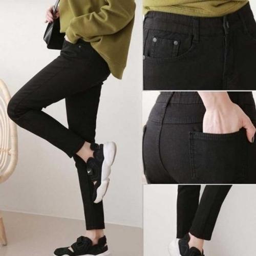[다잇템]여자 스키니팬츠 워싱진 검정데님 면바지