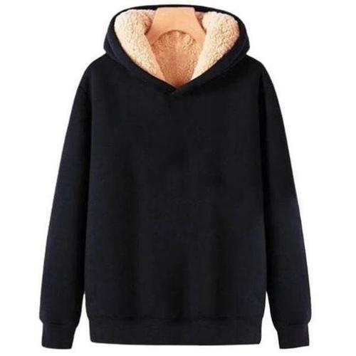[셀러허브_여성트랜드패션]풍성한 겨울 안감 무지 무지후드 후드티셔츠 블랙후드티 양털소재 검정후드티