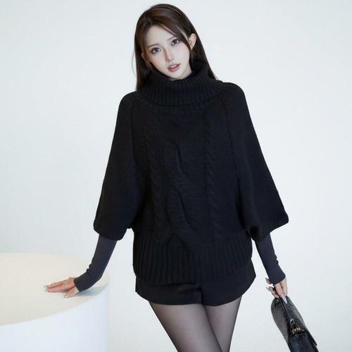 [미라클세븐]여성용 따뜻한 겨울 케이프 니트 터틀넥 꽈배기 스웨터