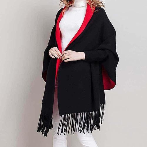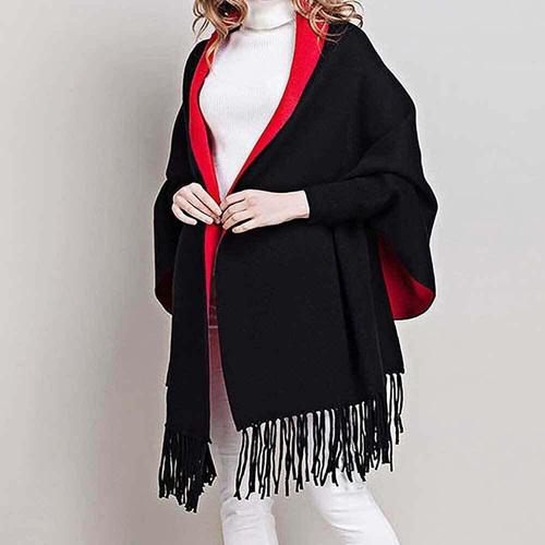 [셀럽하우스]판쵸 GCWY1209 수술 체크 가을 여자 겨울 케이프 숄 가디건