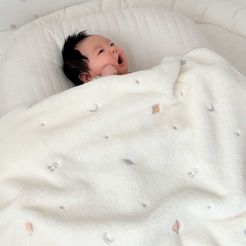 LITTLEMUMU 크리미블랭킷, 극세사자수블랭킷, 아기담요 겨울유아블랭킷