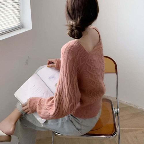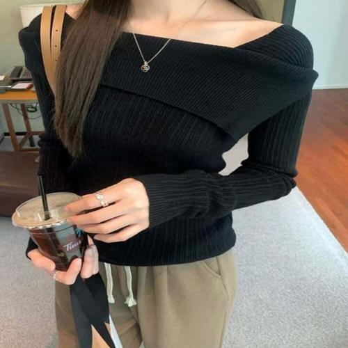 [셀럽하우스]여성 QCYZ9693 2컬러 가을 겨울 데이트룩 페미닌 스퀘어넥 니트