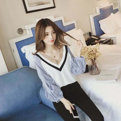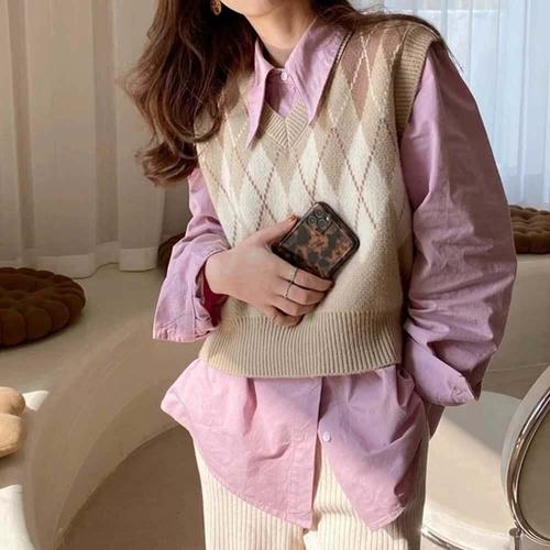 아피나르 여성용 슬림핏 브이넥 데일리 골지 니트