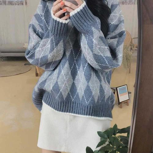 [이프씨마] 여성 겨울 삿포로 감성 빈티지 눈꽃 니트집업