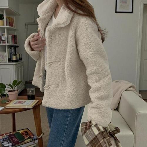 [셀러허브_여성트랜드패션]플리스 일상 플리스코트 아우터 반코트 착용 떡볶이코트 겨울 베르