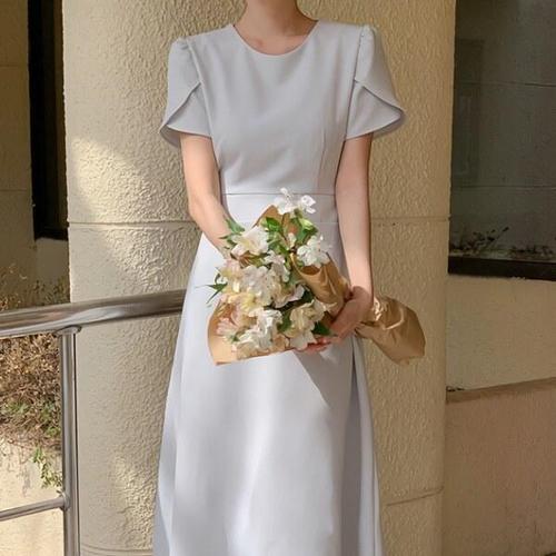 [디자이너몰]여성 결혼식 하객 플레어핏 퍼프 원피스