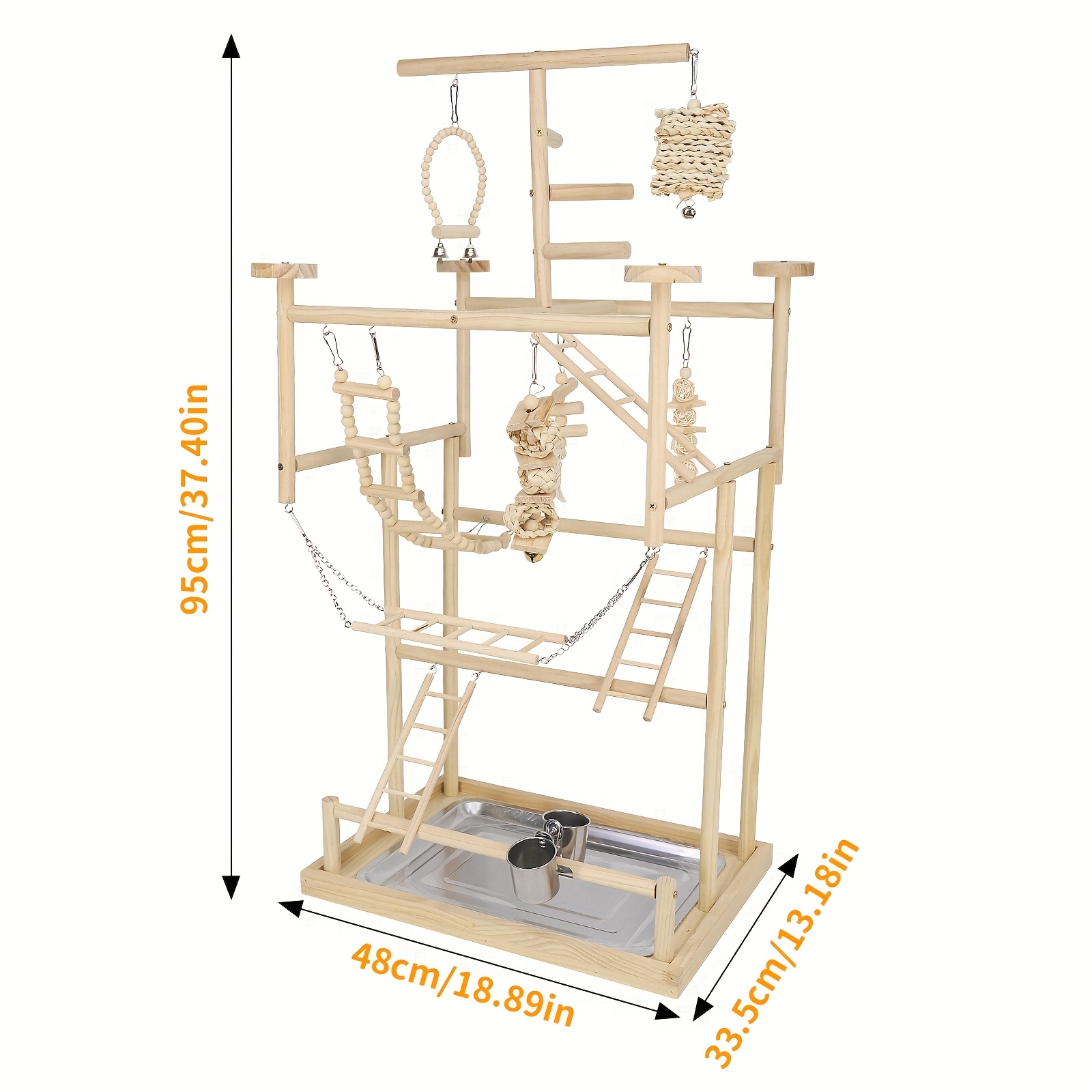 TEMU 나무 파로트 놀이 스탠드, 계단과 스윙, 비늘 갈기, 등반, 자연적인 나무로 제작된 상호 작용 게임 테이블, 파로트, 버지, 코카티일, 러브버드, 기타 중간에서 작은 새를 위한 파로트 놀이 스탠드, 애완 동물 훈련 및 운동, 정신 자극을 위한 디자인.