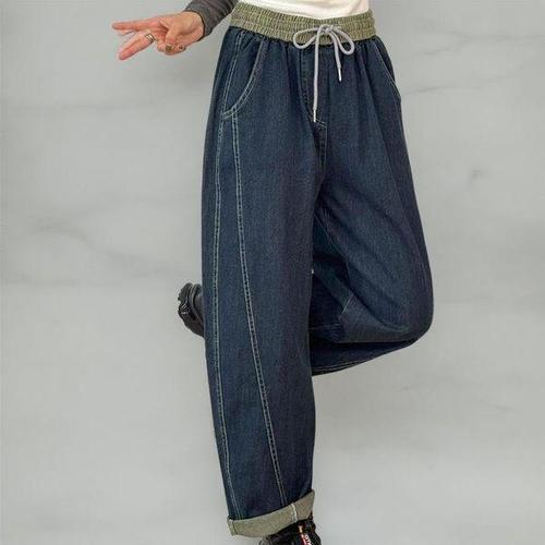 [다잇템][다잇템] 여성 FW 넓은 워싱 콘트라스트 색상 그런지 MAXI 고무줄 청바지_23020305_588872
