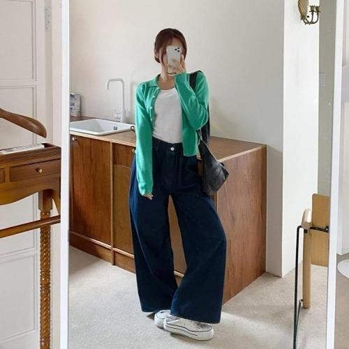 [션타운][S-3XL 빅사이즈]4컬러 고무줄 와이드 청바지