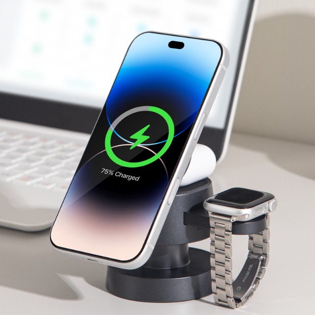 [벨킨] Qi2 3in1 15W 컨버터블 마그네틱 무선 충전 스탠드 초소형 각도조절 애플워치 고속충전 WIZ034