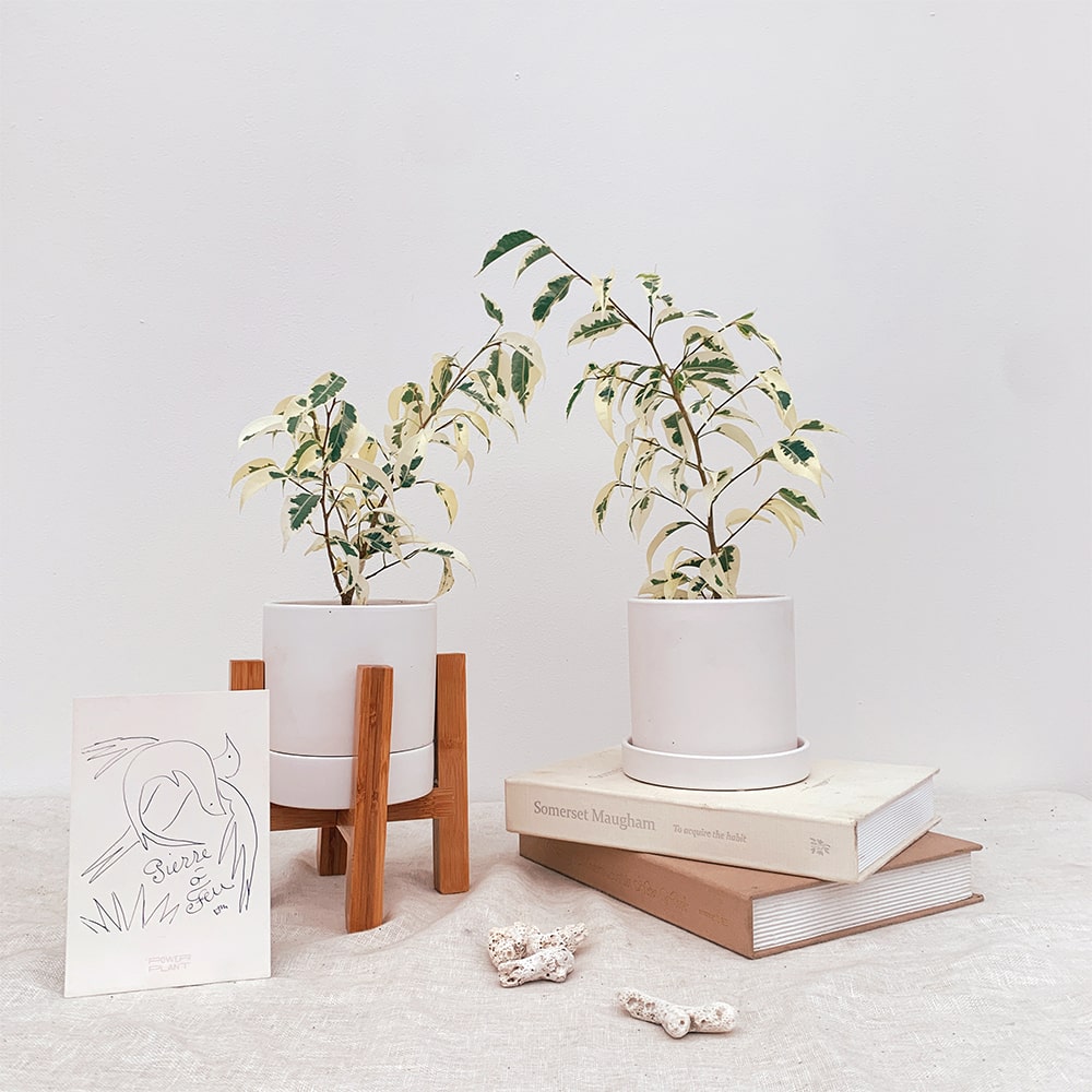 무늬 벤자민 소형_원형 화이트 화분 풀세트/우드 스탠드 화이트 화분 풀세트