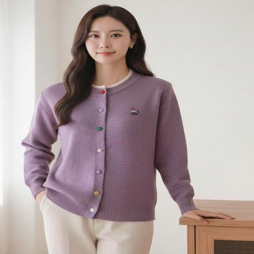 [에이샵][에이샵] 컬러풀 버튼 고양이 자수 가디건_ASCD028F25