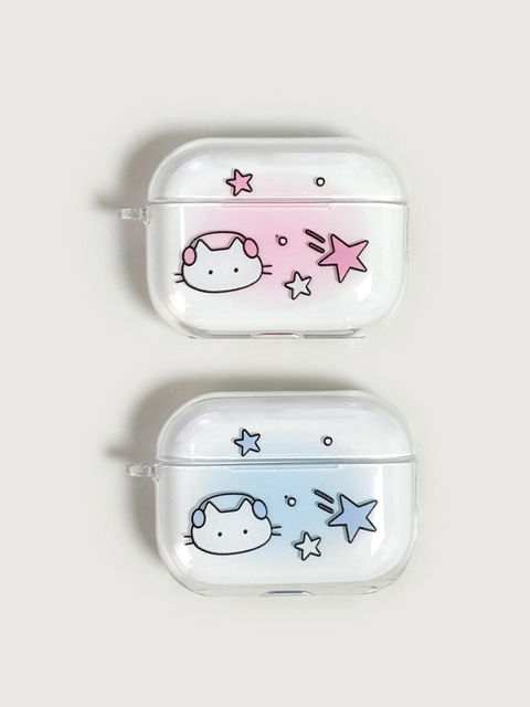 [모나니 스튜디오] [에어팟/버즈] 빙글빙글 고양이 별 투명 블루 에어팟 버즈 투명 하드 이어폰 케이스 airpods case