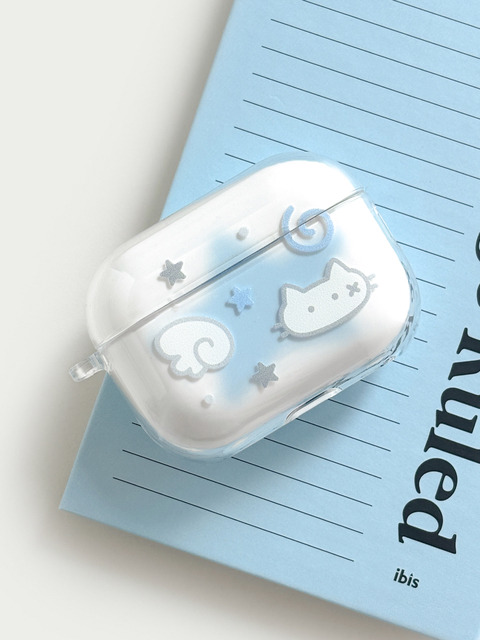 [모나니 스튜디오] [에어팟/버즈] 천사 고양이 별 투명 블루 에어팟 버즈 투명 하드 이어폰 케이스 airpods case