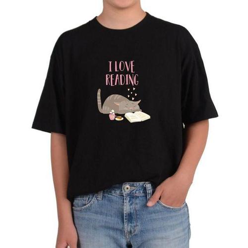 [에이치플러스몰]길단 반팔 USA핏 책 사랑해 고양이 사랑그림 다양한색상 전사이즈