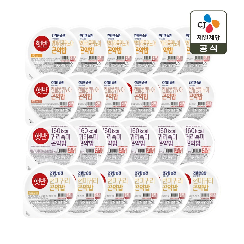 햇반 라이스플랜 곤약밥(병아리콩x6+퀴노아x6+귀리흑미x6+현미귀리x6) 4종 24개 세트