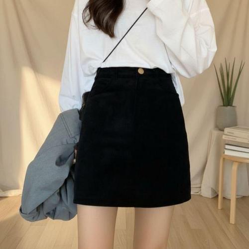 [옷자락] 여성 가을 겨울 하이웨이스트 골덴 미니스커트
