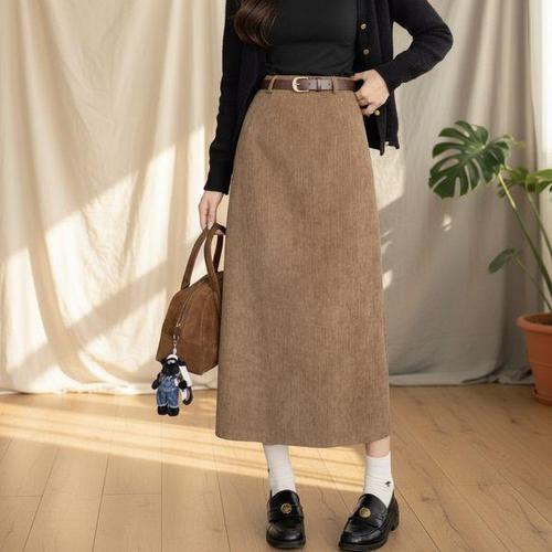 [다잇템]여성 골덴 하이웨스트 긴치마 벨트포함