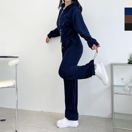 [에이치플러스몰]와이드 여성 골덴 바지 반집업 세트 여자 기모 츄리닝