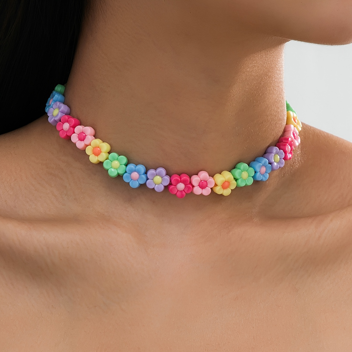 TEMU 1개 귀여운 플로럴 비즈 목걸이 - 파스텔 그라데이션 컬러풀 꽃 펜던트, 여성용 가벼운 데일리 주얼리, 캐주얼 & 휴가용 액세서리, 핸드메이드 디자인, 스타일리시한 매력, 패션 애호가를 위한 다재다능한 비즈 장식