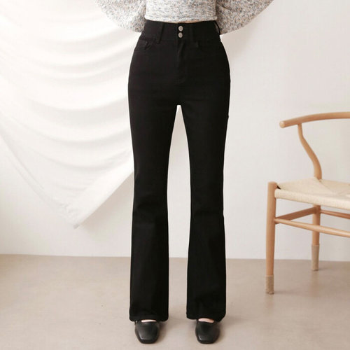 지기핏 3단기장 골반패드 투버튼 부츠컷 밴딩 데님 여성청바지
