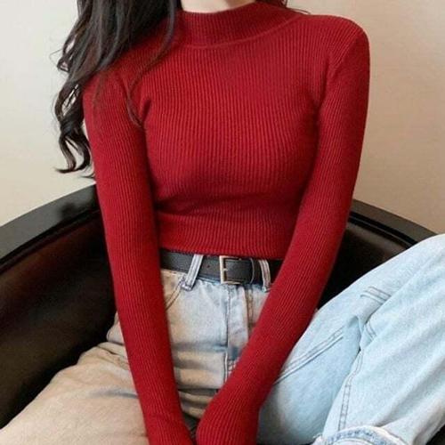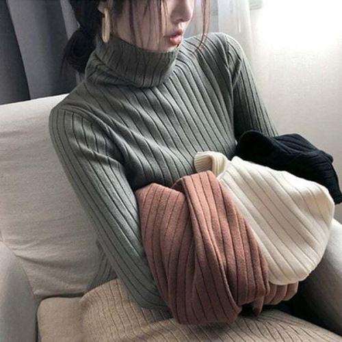 [의류] 골지 여성 폴라티 슬림핏 목폴라 긴팔 니트 티셔츠
