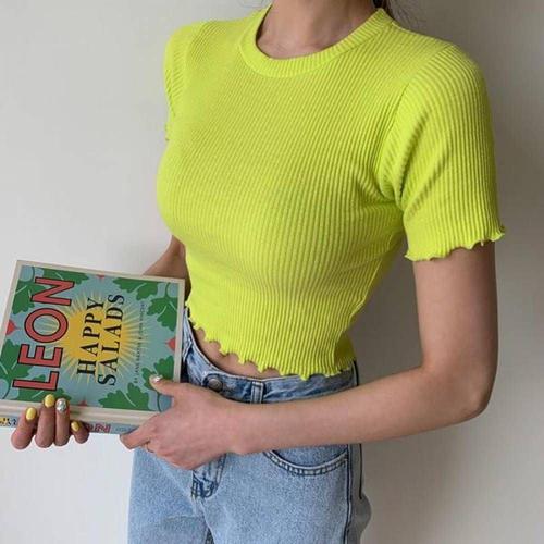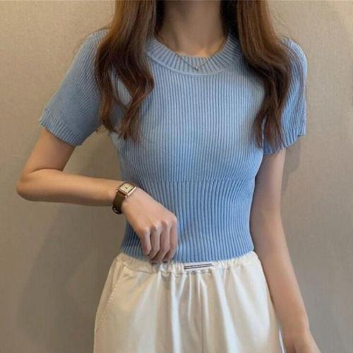 반목 골지 반팔 니트 여자 니트반소매 티셔츠