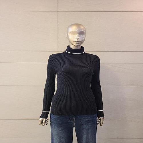 [샵앤]여성 터틀넥 V 부분골지 베이직 니트 티셔츠 DGB-WKN-4076-블랙