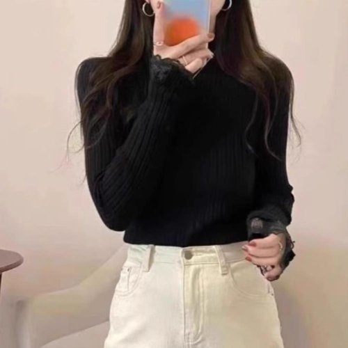 [옷자락]여성 레이스 포인트 골지 반폴라 니트