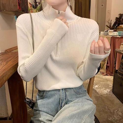 [에이치플러스몰]여성 하프집업 골지 니트 탑 하이넥 슬림핏 데일리룩