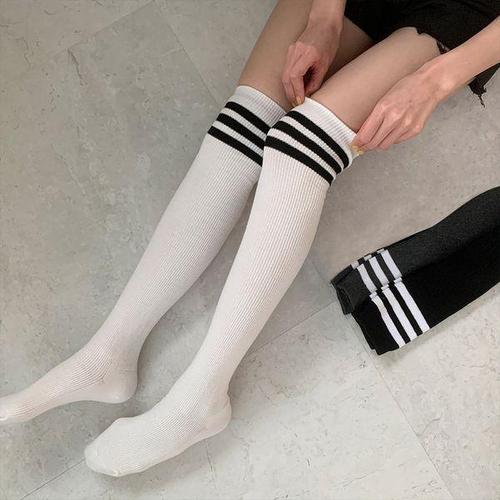 [BZJHK129_49]스트라이프 골지 여성 오버니삭스 긴양말