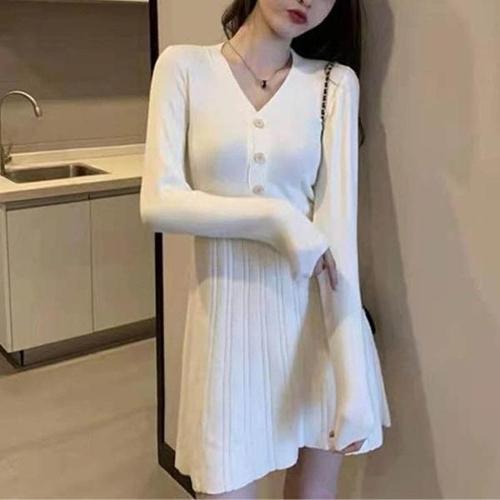 미엘리 V넥 골지 니트 원피스 미니 치마 스커트 겨울 가을 여성 하객룩