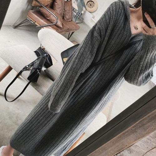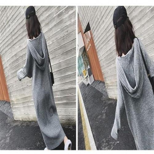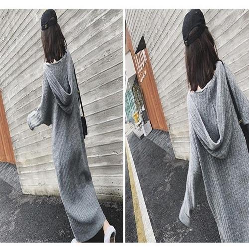 [엄지척]후드 여성 골지 니트 롱 봄 가을 겨울 원피스 그레이_19805545_667501