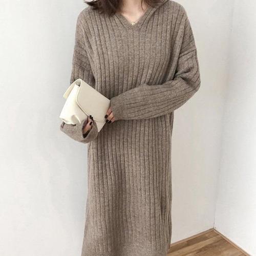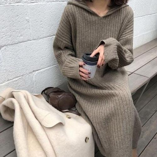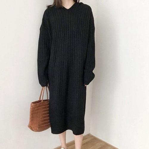 [엄지척]여성 골지 후드 니트 롱 봄 가을 겨울 원피스_19873559_667501