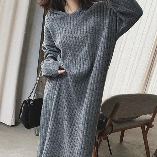 [엄지척]여자 겨울 데일리 후드 니트 롱원피스 골지 루즈핏_19910709_667501