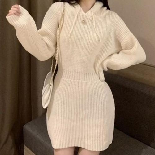 골지 니트 후드 롱 원피스 슬림 겨울 가을