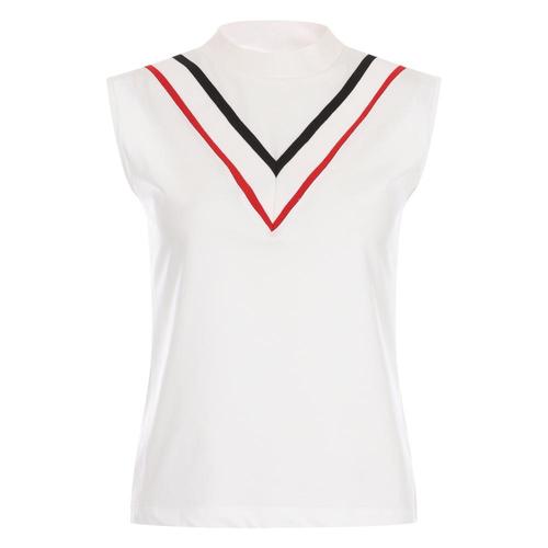 여성 프리미엄 라운드넥 V배색 골프 스판 민소매 티셔츠 LB-WSH-20613-화이트