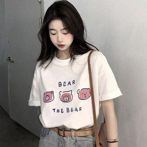 레터링 프린팅 봄티셔츠 여성 곰돌이 사무실 반팔티 빈티지 학교 루즈핏 MWE875B724