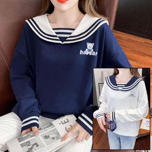[셀럽하우스]여학생 LCXR5596 캐주얼 카라 곰돌이 캐릭터 긴팔티 카라티
