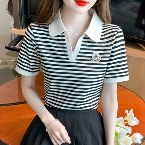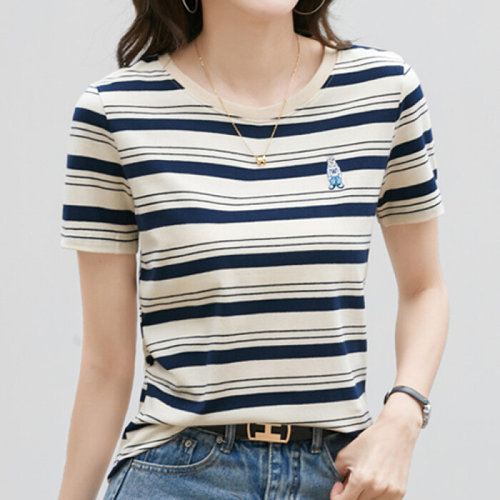 나바바 / NT738 캐주얼 곰돌이 포인트 단가라 반팔 티셔츠