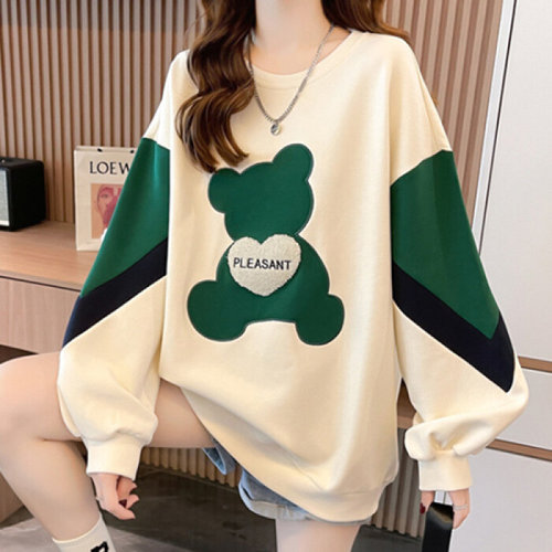 ROYALBELLE 여성 라운드넥 곰돌이 프린트 루즈핏 얇은 맨투맨 빅사이즈 캐주얼 티셔츠 F0090517