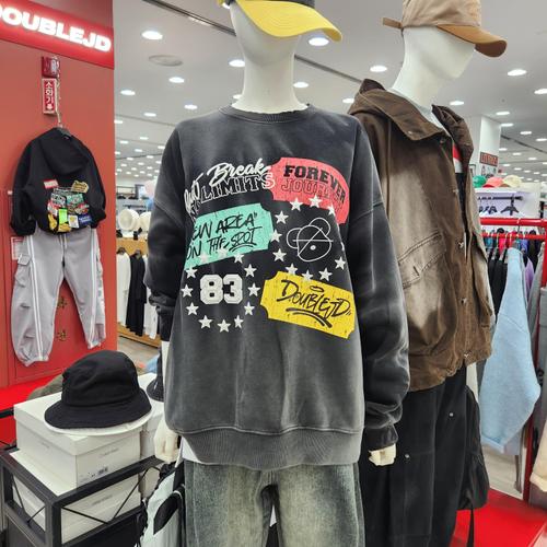 나바바 / NT1296 캐주얼 곰돌이 배색 긴팔 맨투맨