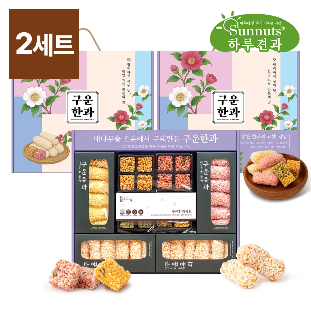[하루견과] 기름0% 구운한과 선물세트x2세트 (구운유과+강정) /전통간식/ 명절선물세트