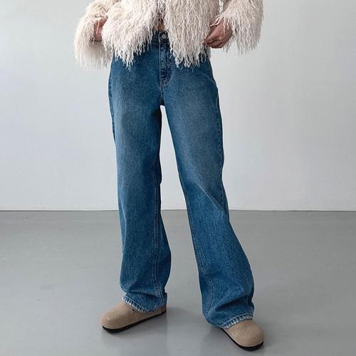 [다잇템]여자 구제포켓 키큰녀 세미와이드 청바지
