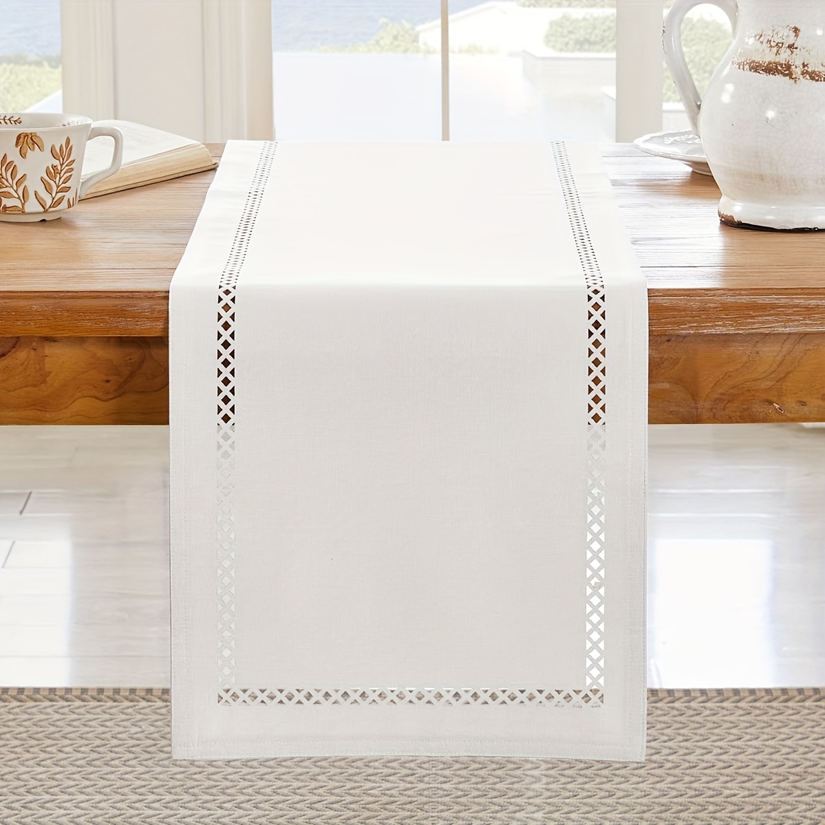 TEMU 1pc 우아한 노르딕 스타일 폴리에스터 테이블 러너, 세밀한 컷 아웃 디자인, 식사, 오후 차, 가정, 호텔, 결혼식 장식용 직사각형 테이블 장식, 식탁 장식 | 노르딕 스타일 장식 | 텍스처, 테이블 장식