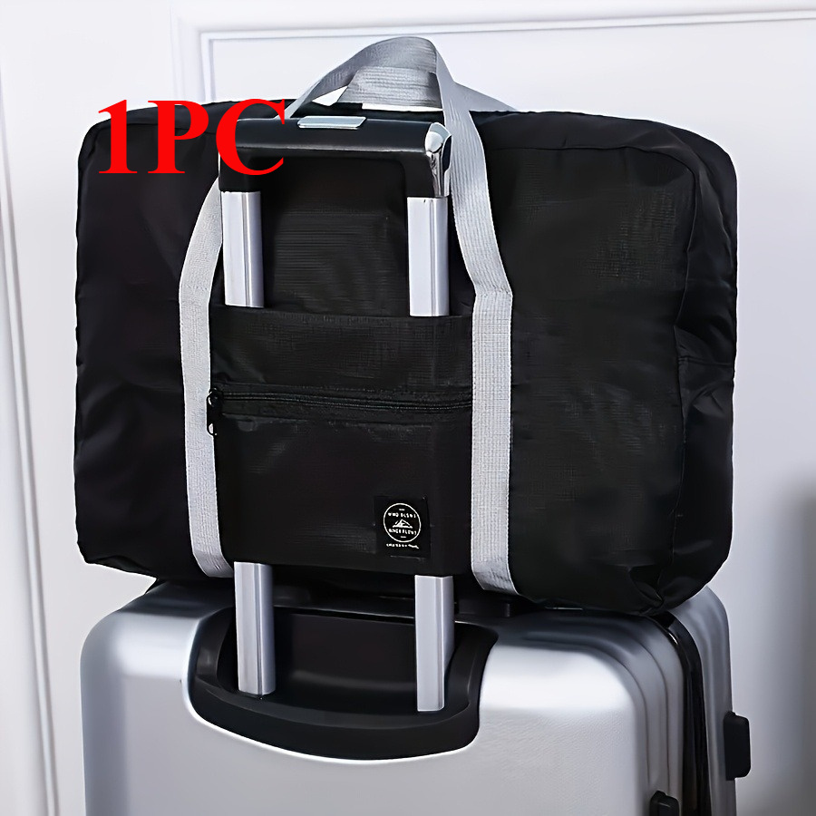 TEMU 가벼운 옥스포드 여행 가방 - 접이식 휴대용 여행 가방, 고정 숄더 스트랩, 지퍼 잠금, 추가 용품 포함, 대용량 수납 가방, 헬스장 및 주말 여행에 적합 | 2가지 색상으로 제공