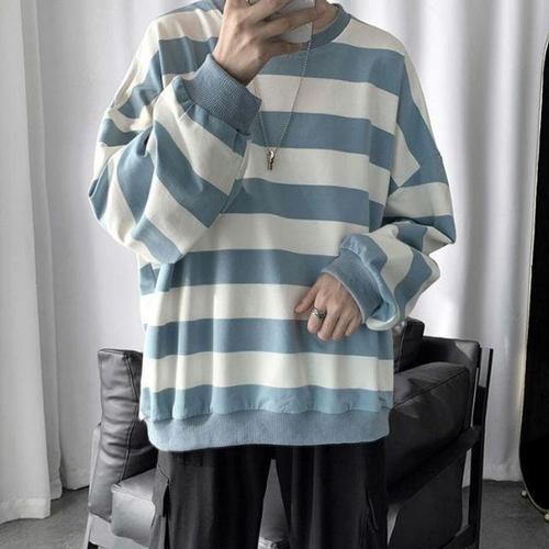 남성맨투맨 쿨샵 긴팔티셔츠 남자 굵은 봄패션 스트라이프 오버핏 WFJHNQC