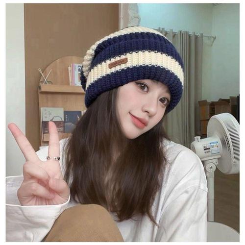 [에이치플러스몰]굵은 여성 모자 스트라이프 빅 비니 데일리 깔끔한